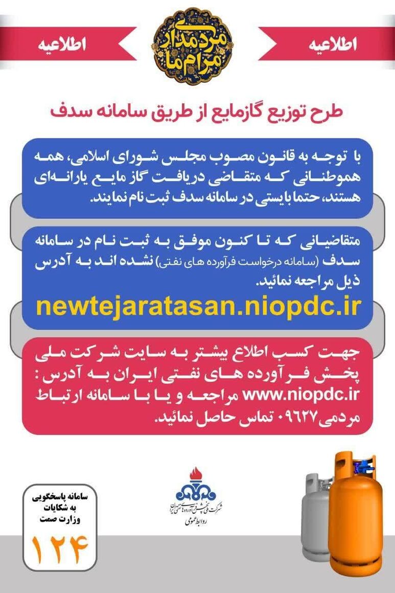 به گزارش شانا، در متن این اطلاعیه آمده است: «با توجه به قانون مصوب مجلس شورای اسلامی، همه هموطنانی که متقاضی دریافت گاز مایع یارانهای هستند، لازم است در سامانه درخواست فرآوردههای نفتی (سدف) ثبتنام کنند.