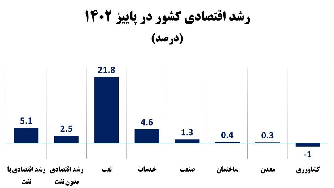 بر اساس این گزارش، سهم نفت در تحقق رشد اقتصادی کشور طی پاییز ۱۴۰۲، افزایش ۵۱ درصدی داشته است.