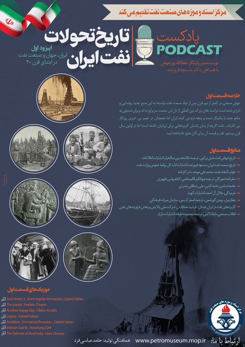 نخستین قسمت از مجموعه پادکست «تاریخ تحولات نفت ایران» با عنوان «ایران، جهان و صنعت نفت در ابتدای قرن ۲۰» به همت مرکز اسناد و موزههای صنعت نفت منتشر شد.
