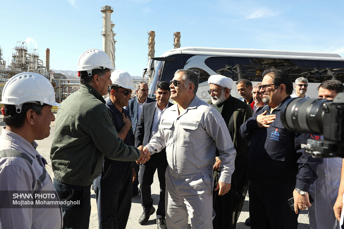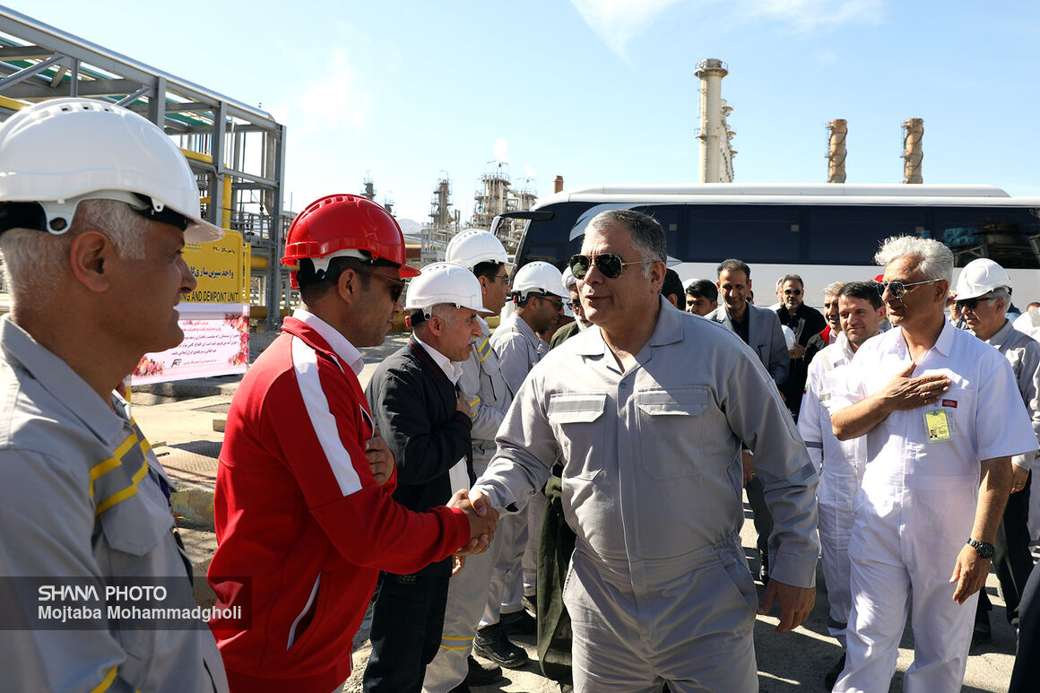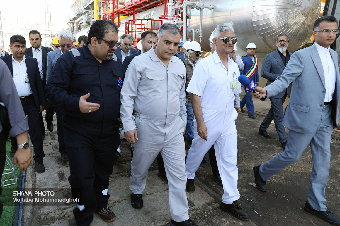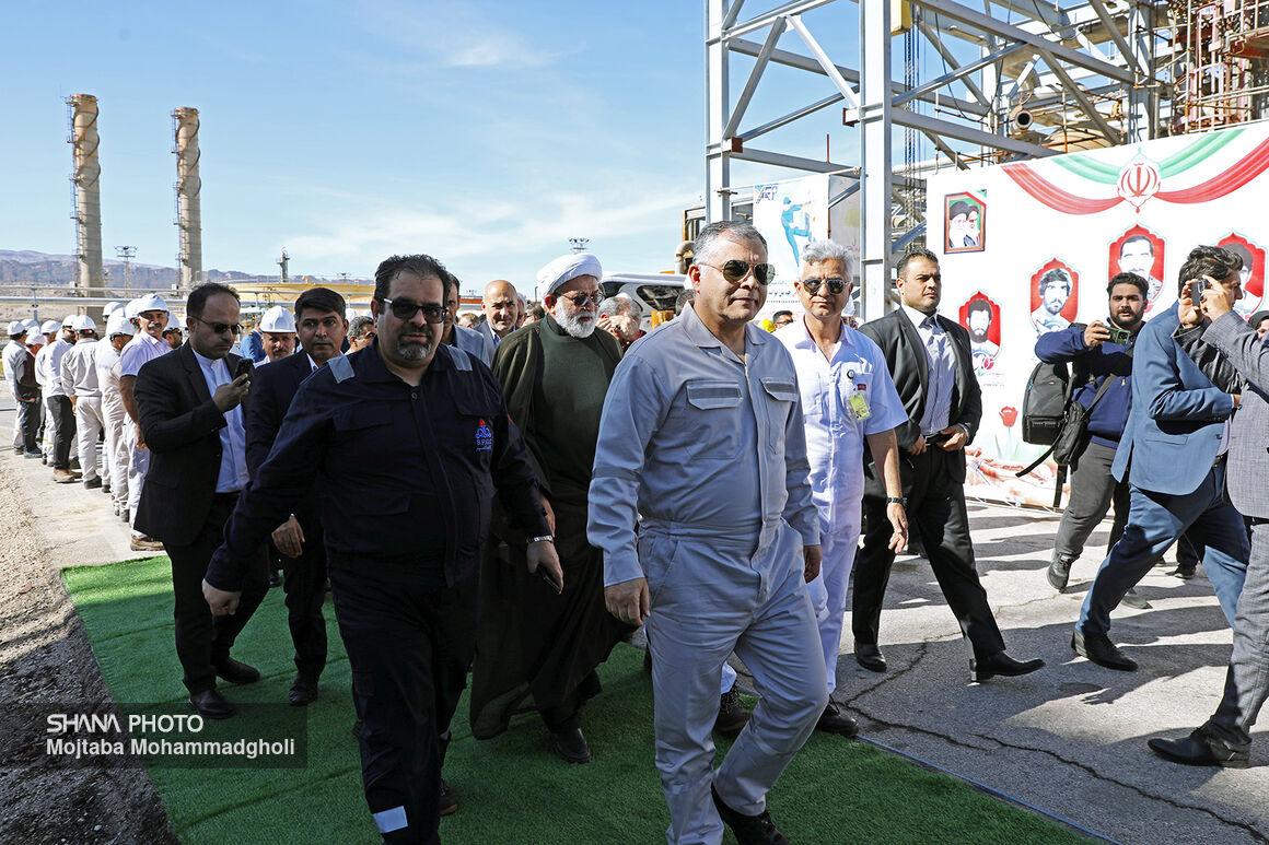شانا _ گروه عکس: ردیف دوم واحد شیرینسازی شرکت پالایش گاز فجر جم که در جریان جنگ ۱۲روزه دچار حادثه شده بود، امروز (دوشنبه، ۱۵ دی) اما با حضور محسن پاکنژاد، وزیر نفت به مدار تولید بازگشت.