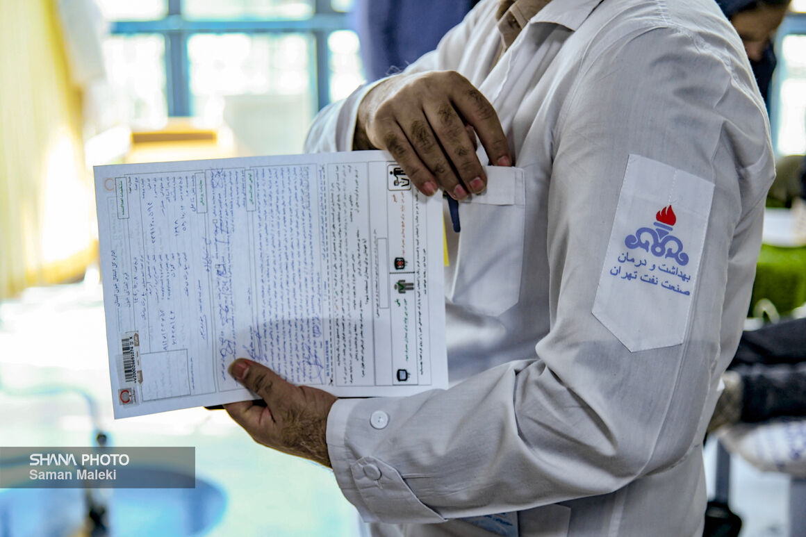 شانا _ گروه عکس: جمعی از کارکنان صنعت نفت امروز (چهارشنبه، هشتم بهمن‌) با حضور در بیمارستان صنعت نفت، بار دیگر جلوه‌ای از همدلی و نوع‌دوستی را با اهدای خون به نمایش گذاشتند.