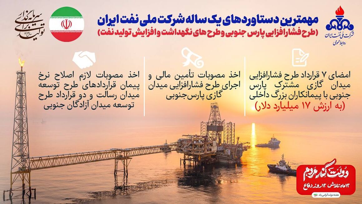 تولیدات هنری ۵ شهریور ۱۴۰۴ - ۰۹:۵۱ دریافت تصاویر ۱۲ ماه تلاش/ نفت برچسبها شرکت ملی نفت ایران تولید نفت تولید گاز صادرات نفت شرکتهای دانشبنیان مطالب مرتبط ۱۲ ماه تلاش/ پالایش و پخش ۱۲ ماه تلاش/ پتروشیمی ۱۲ ماه تلاش/ گاز