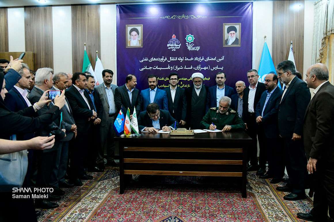 شانا _ گروه عکس: قرارداد احداث خط لوله راهبردی پارس (مهرآران، فسا، شیراز)، امروز (چهارشنبه، ۲۳ مهر) میان محمد مشکینفام، مدیرعامل شرکت ملی مهندسی و ساختمان نفت ایران و عبدالرضا عابد، فرمانده قرارگاه سازندگی خاتمالانبیا (ص) با حضور محمدصادق عظیمیفر، مدیرعامل شرکت ملی پالایش و پخش فرآوردههای نفتی ایران امضا شد.