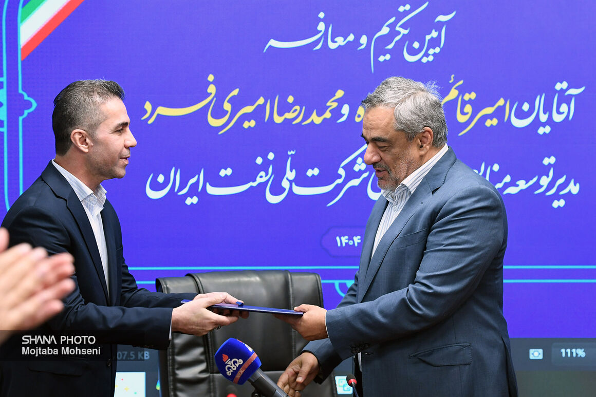 شانا _ گروه عکس: آیین تکریم امیر قائمپناه و معارفه محمدرضا امیریفرد، مدیر منابع انسانی شرکت ملی نفت ایران امروز (چهارشنبه، هفتم آبان) با حضور حمید بورد، مدیرعامل شرکت ملی نفت برگزار شد.
